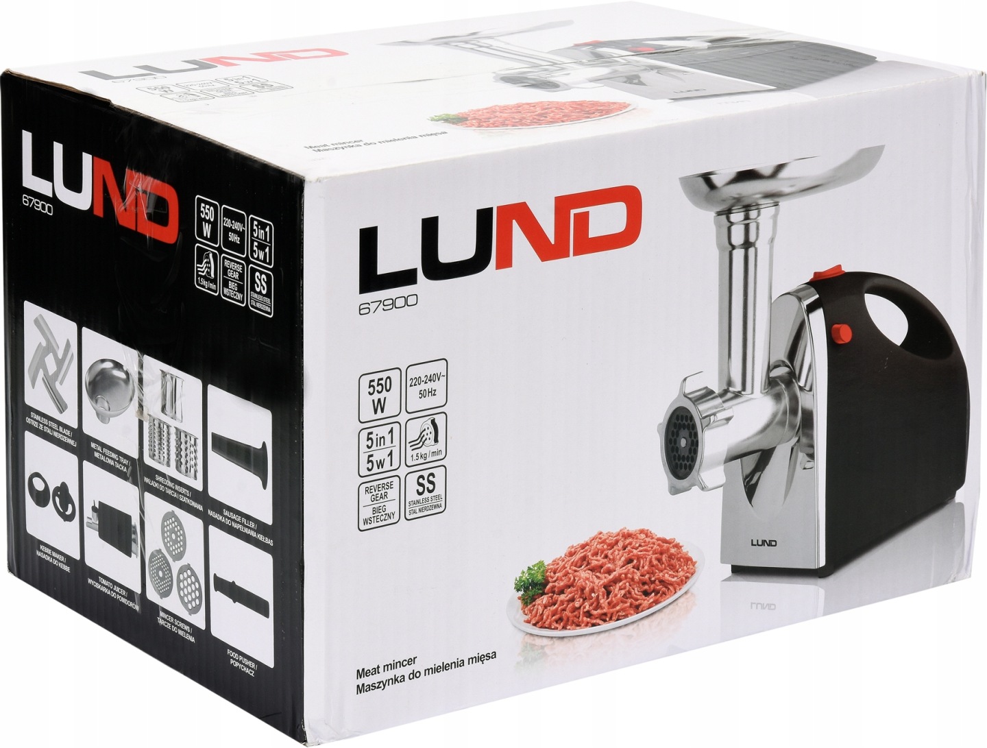 Багатофункціональна м'ясорубка 5in1 від LUND з максимальною потужністю 1200 Вт, продуктивність 1,5 кг / хв.