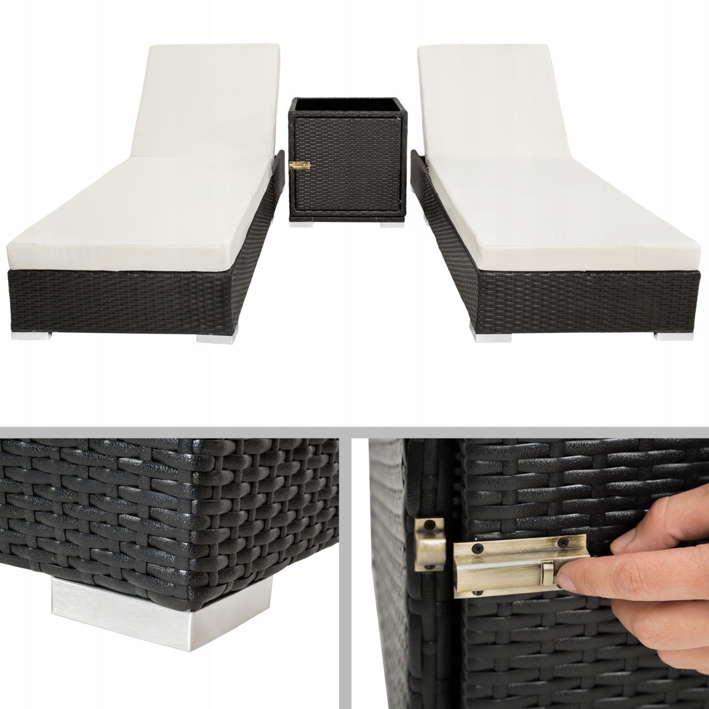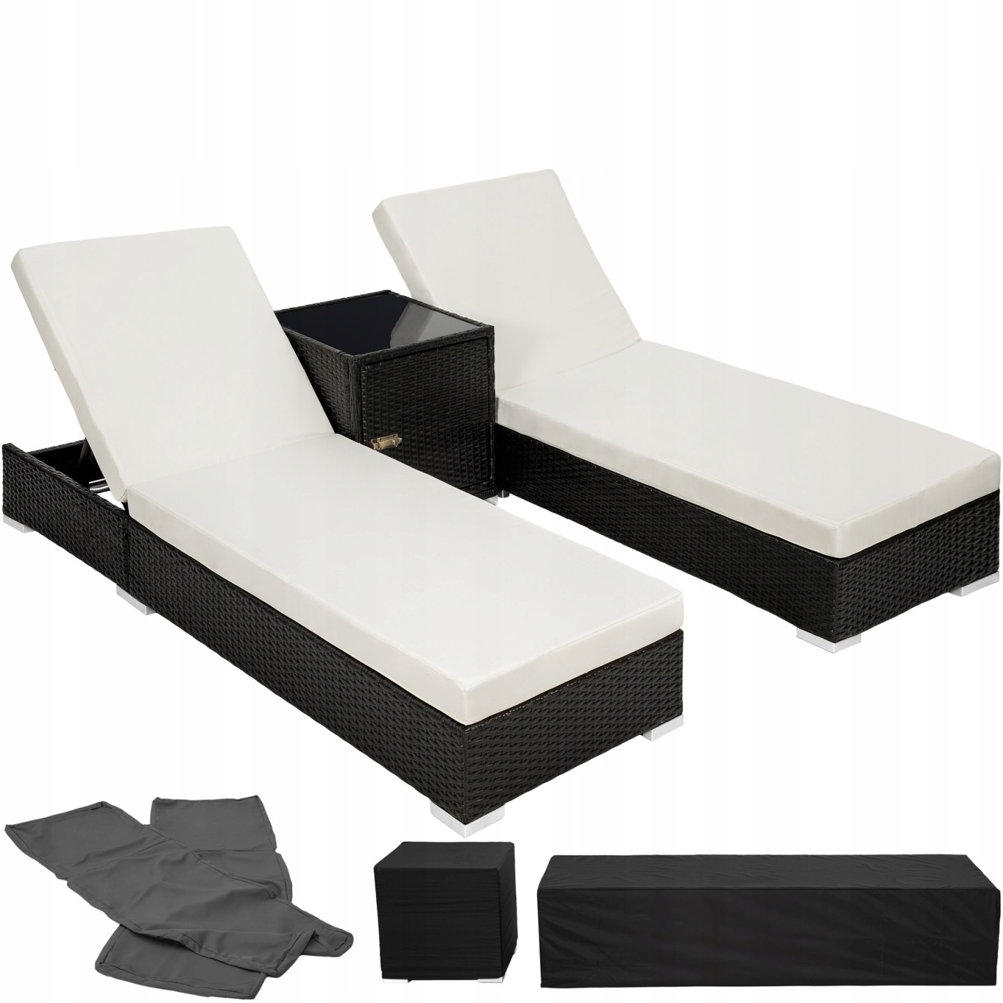 Садові меблі із полиратана 2 шезлонга плюс стіл + чохол + 2 чохла ЧОРНИЙ