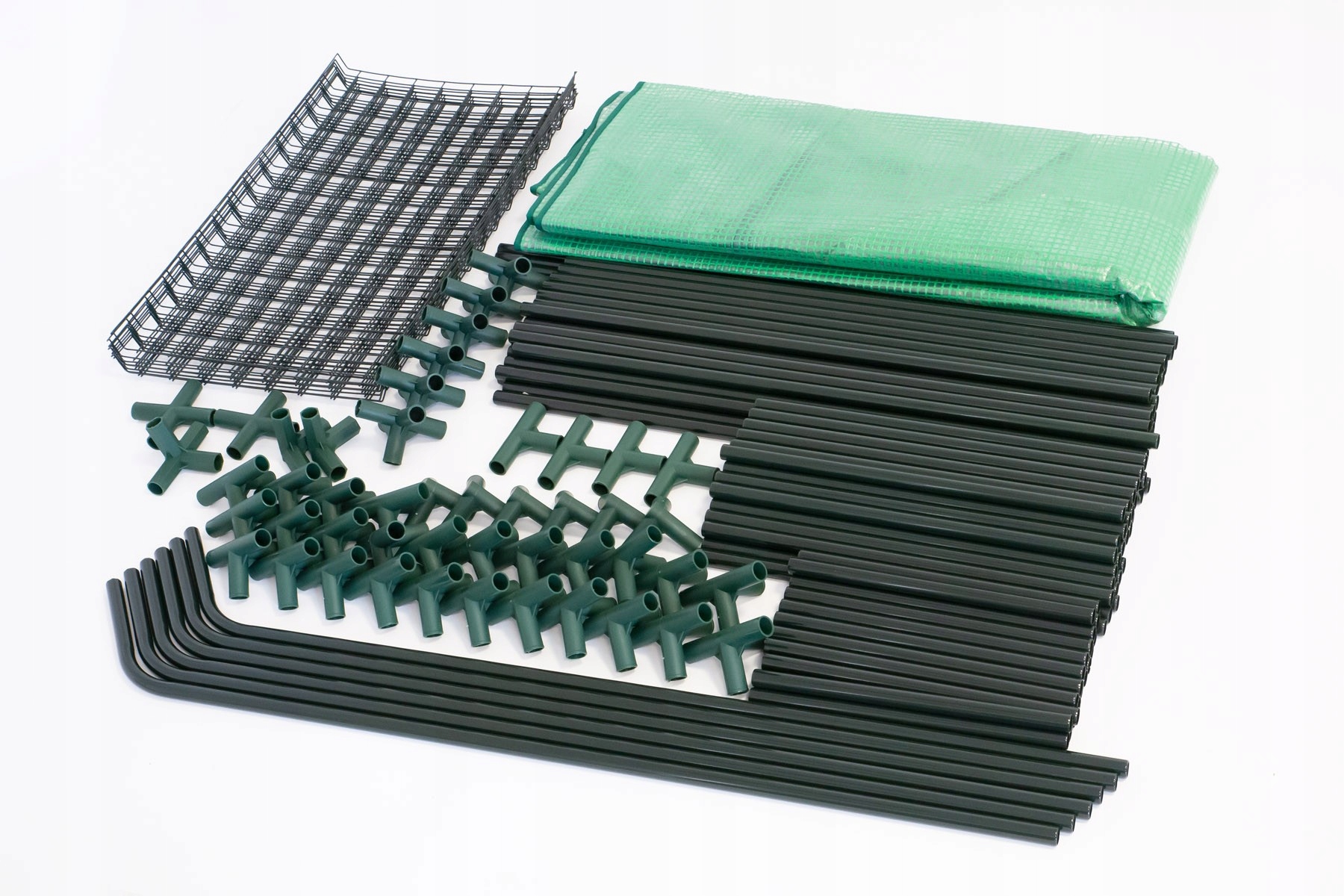 У комплект входять всі елементи для збірки: труби і кріплення для каркаса, фольга, 8 полиць і інструкція.