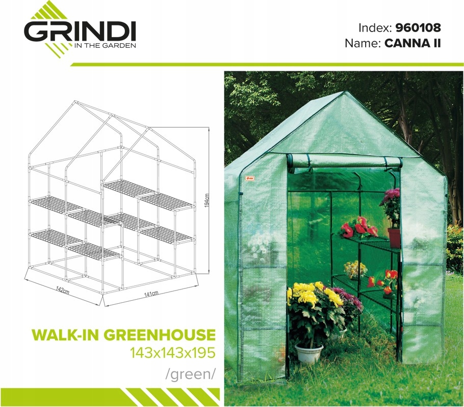 Садовий тепличний котедж - 143x143x195 - Канна II зелена